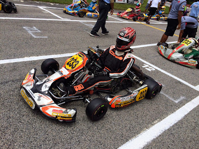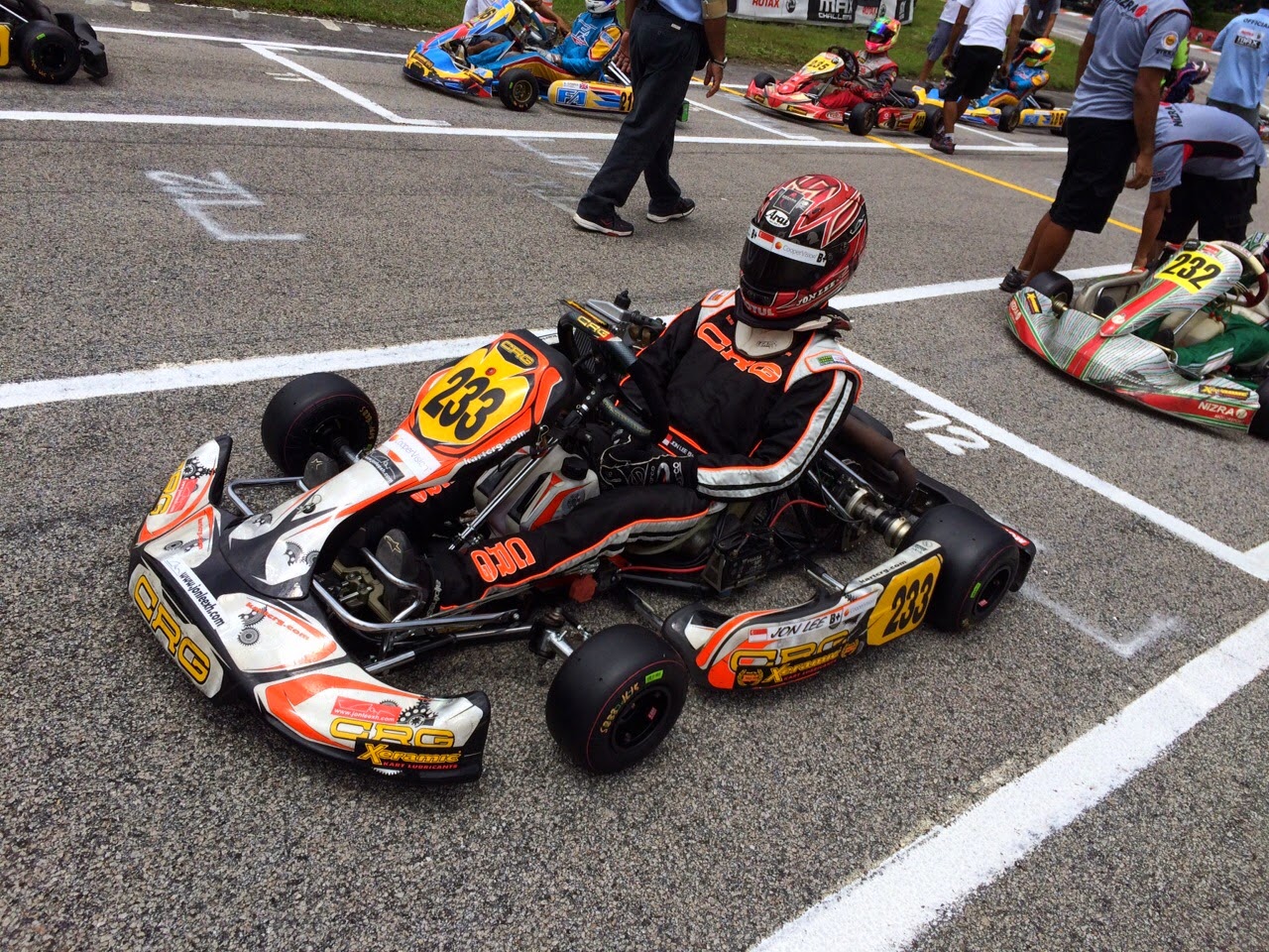 Qualifying as usual was held on Saturday afternoon after lunch time. As the track is less than 1km, traffic proved to be a factor during qualifying and Jon was impeded, thus he only managed to qualify at 9th position. Since Jon started racing in the Senior class, his qualifying position has continued to progress, from 19th in Rd1, 13th in Rd2 and now at position 9th.