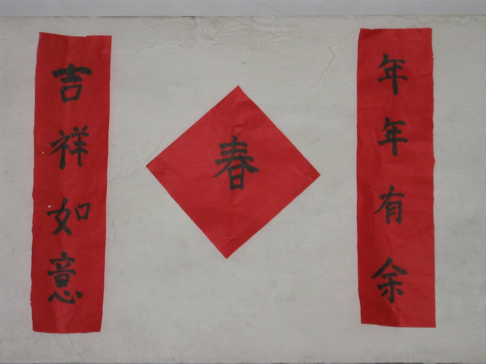 Please enjoy the “Chun Lian” (spring couplets written on red paper) below which were handwritten by me and may the “Chun” (Spring) and “Fu” (Luck) arrive at your house!