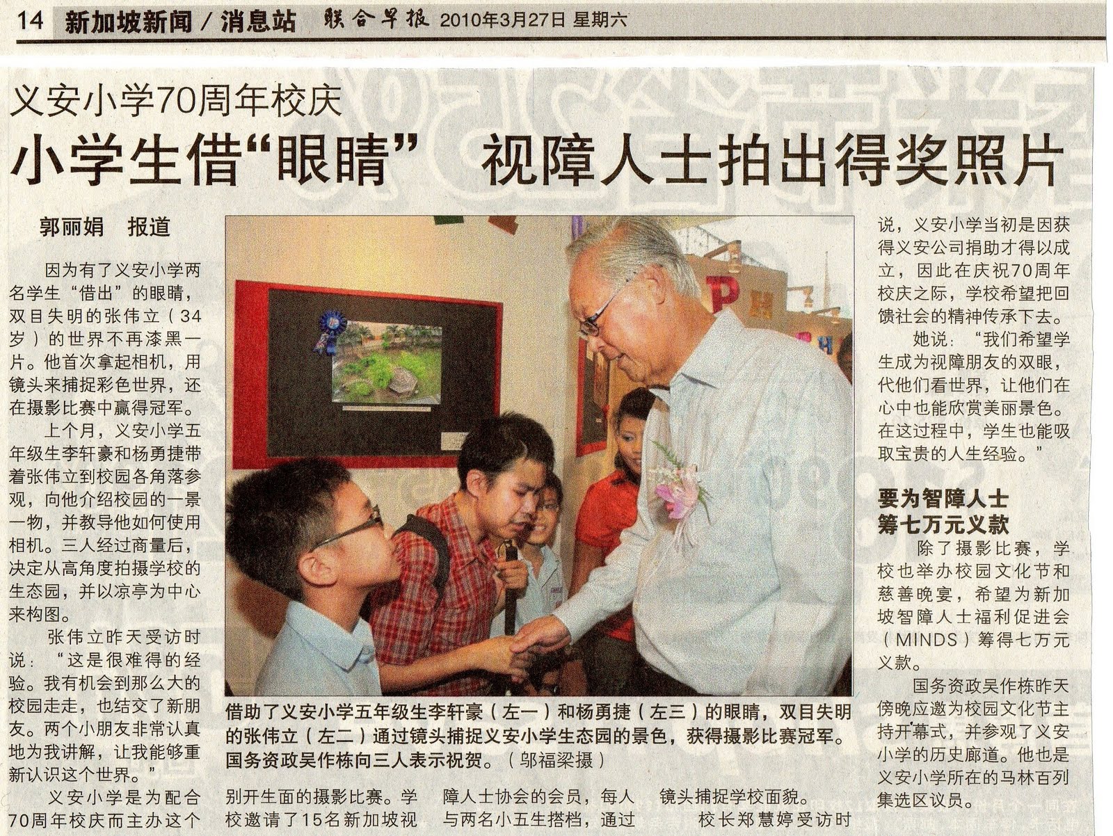 Jon met and chatted with Dr Vivian Balakrishnan, Minister for Community Development, Youth & Sports at the “Changi Motorsports Hub Tender Award Press Conference” in the morning. Thereafter, rushed home to change into his school uniform, and in the afternoon, he met and greeted Senior Minister Goh Chok Tong at Ngee Ann Primary School, “Culture Alive”. And finally, going up the stage to receive his first prize from SM Goh.